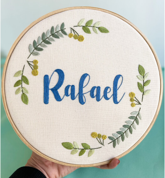 Meu objetivo é levar amor através de bordados. Seja para presentear alguém importante, marcar e eternizar um momento especial ou para decorar um espaço que seja importante pra você.