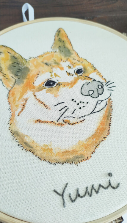 Retrato bordado e aquarela