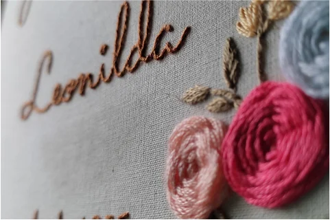 “Faço bordados personalizados, com muita sofisticação e delicadeza, com muito cuidado, zelo e sempre entregando um trabalho muito bonito.